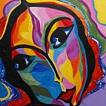 Kleurrijk abstract schilderij in de Art Deco stijl