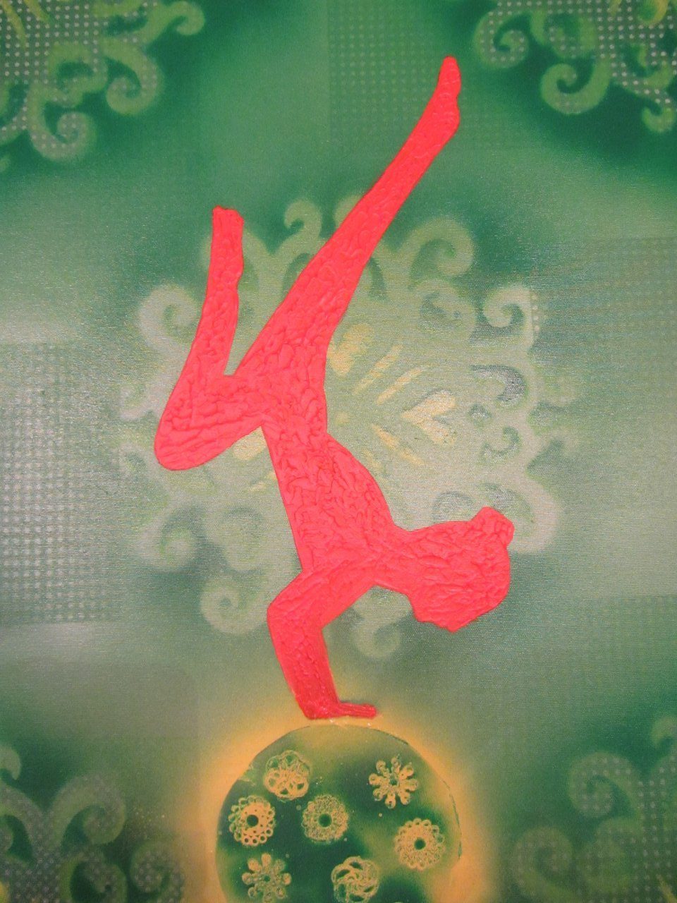 Yoga art is een acrylschilderij waarbij een yogahouding centraal staat.