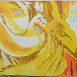 Een globale impressie van het schilderij "De dans" 100x100cm.