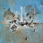 Een globale impressie van het schilderij "Zonder titel" 70x70cm.