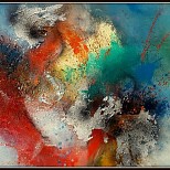 Een globale impressie van het schilderij "FlowerPower" 80x80cm.