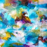 Een globale impressie van het schilderij "Cosmic dancer" 60x80cm.