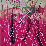 Een globale impressie van het schilderij "Opera" 100x100cm.