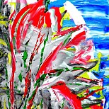 Een globale impressie van het schilderij "Winterslaap" 100x100cm.