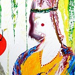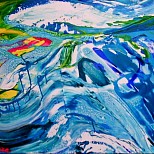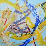 Een globale impressie van het schilderij "Verstrengeld" 100x100cm.