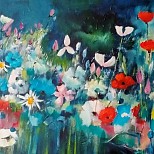 Een globale impressie van het schilderij "Boomgaard" 120x100cm.