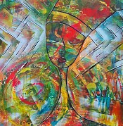 Intuïtief schilderij, acryl en inkt op doek
