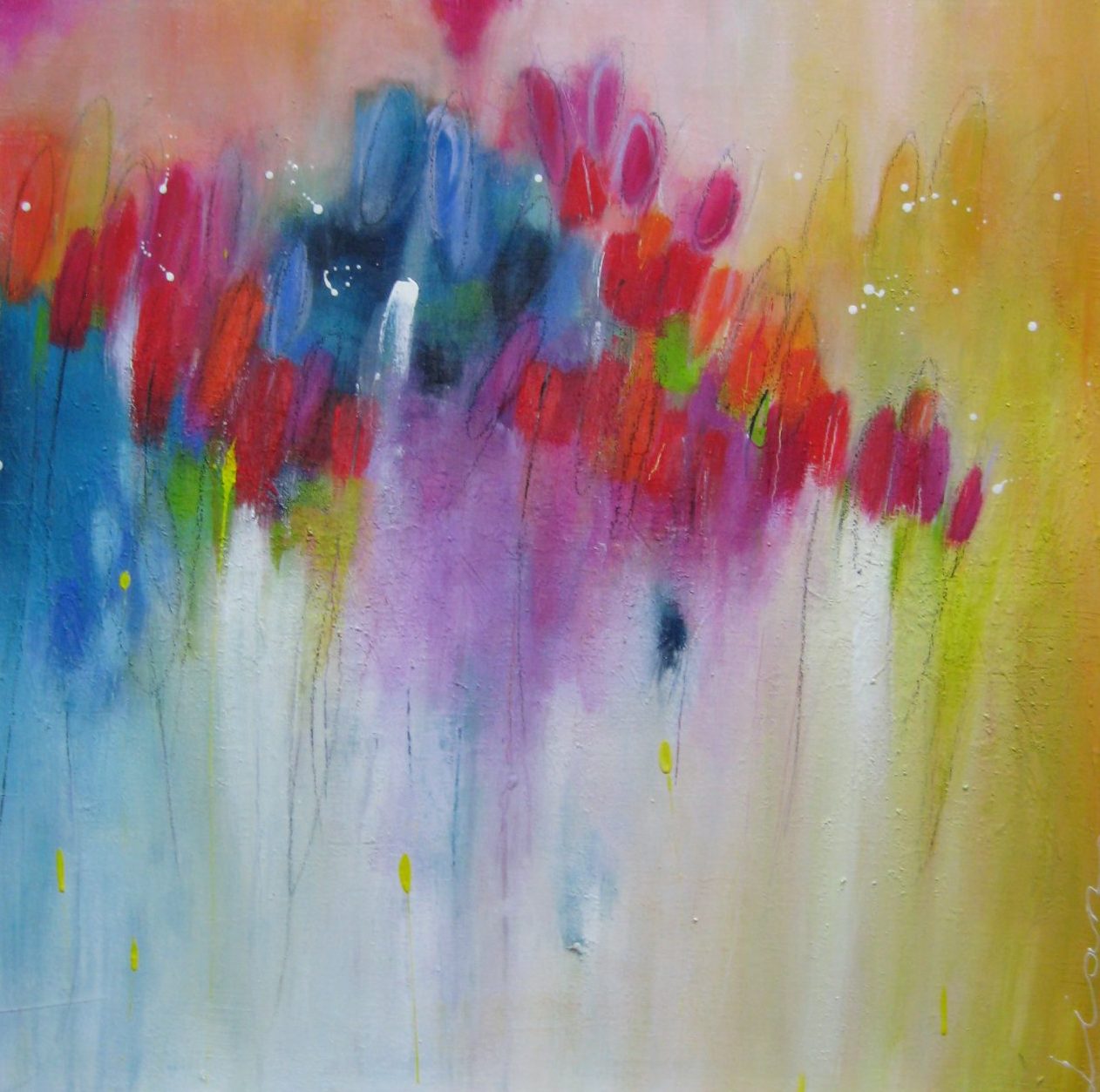 Abstract werk wat voor mij de zomer uitstraalt.acryl en oliepastel toegepast.