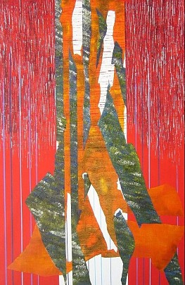 Abstract schilderij uitgevoerd in olieverf en inkt op linnen
