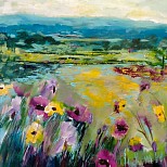 Een globale impressie van het schilderij "Naar het feest" 100x100cm.