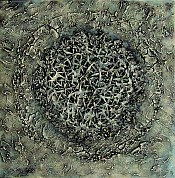 Een globale impressie van het schilderij "Point of no return" 80x80cm.