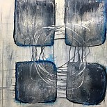Een globale impressie van het schilderij "Hokjes" 50x50cm.