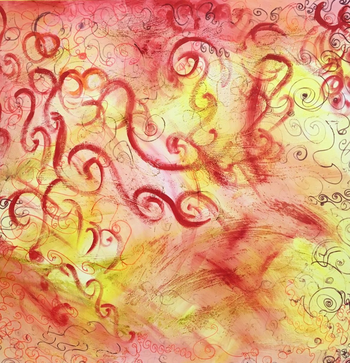 Een globale impressie van het schilderij "Zomer 2016" 150x150cm.