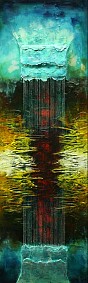 Een globale impressie van het schilderij "Waves of progression" 40x120cm.