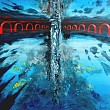 Een globale impressie van het schilderij "I come from the water" 50x50cm.