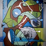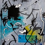 Traffic Mind is a modern abstract painting in a big format on canvas. Traffic mind is a painting from the serial Fiction elements.