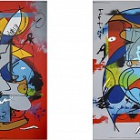 This series of paintings by Christian van Hedel also belongs to modern art. Balanced lines, stripes, stains of bright colors against a gray background are projected on linen in shapes of colorful contrasts. This new series of paintings are of a wider size than is used to Christian. A 1.6 meter canvas is an average size in this series. In 2017 he focused on painting these abstract paintings. Painting is one of his disciplines in addition to his mixed media art, drawing, photography and photo art. For example, 2016 featured his mixed media art in the spotlights at fairs, galleries and other exhibitions. That Christian keeps a fair change is well known. Still, he regularly combines all his disciplines in a miraculous way in one piece of art. On the question of whether he will use this series of paintings for his mixed media, he still has no answer. It's coming and it goes as it goes. If a match is found between his other disciplines and these paintings, that's the way. Nevertheless, these paintings have certainly not been established with the aim of creating mixed media art.