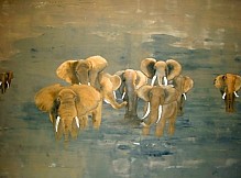 Een globale impressie van het schilderij "Badende Olifanten" 100x80cm.