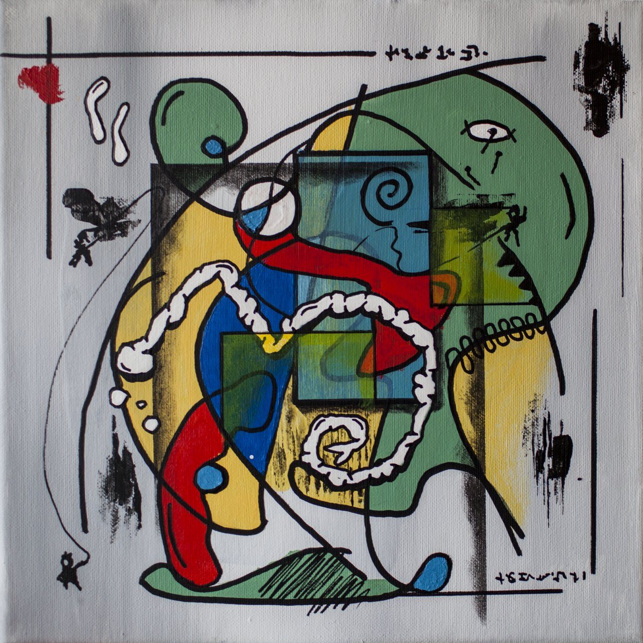 Een globale impressie van het schilderij "What if I will jump" 30x30cm.