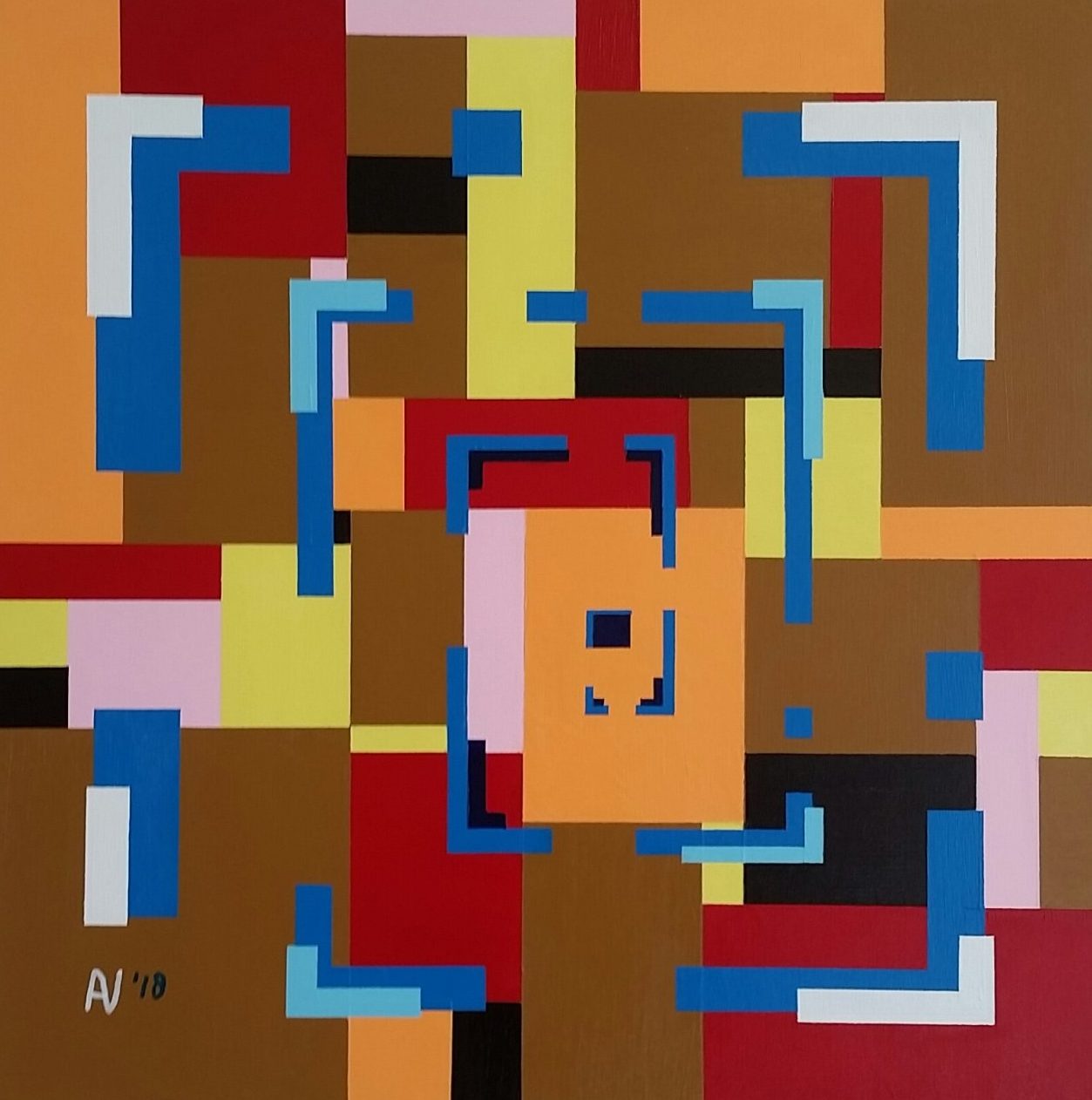 Een rechthoekige draaikolk. Acryl op canvas