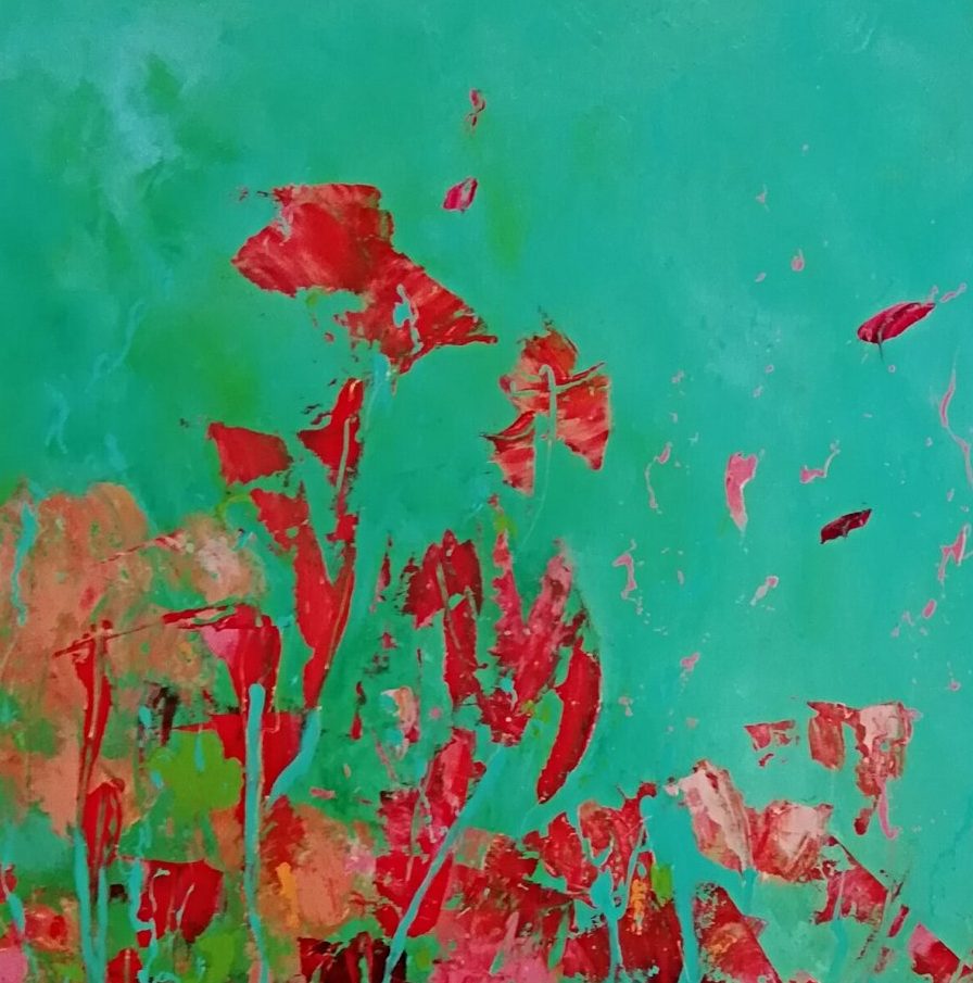 Een globale impressie van het schilderij "Fields of joy" 80x80cm.