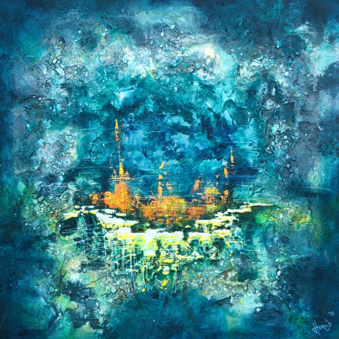 Een globale impressie van het schilderij "Life in the Shallows" 60x60cm.