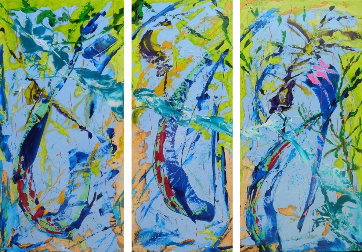 Een globale impressie van het schilderij "Deep blue see" 160x100cm.