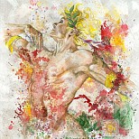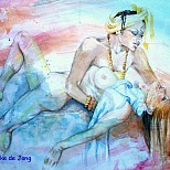 Een globale impressie van het schilderij "Rond de Nacht" 100x120cm.