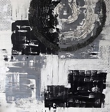 Een globale impressie van het schilderij "Black, Grey, White" 100x100cm.