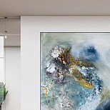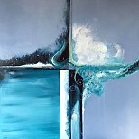 Een globale impressie van het schilderij "Under the surface" 100x40cm.