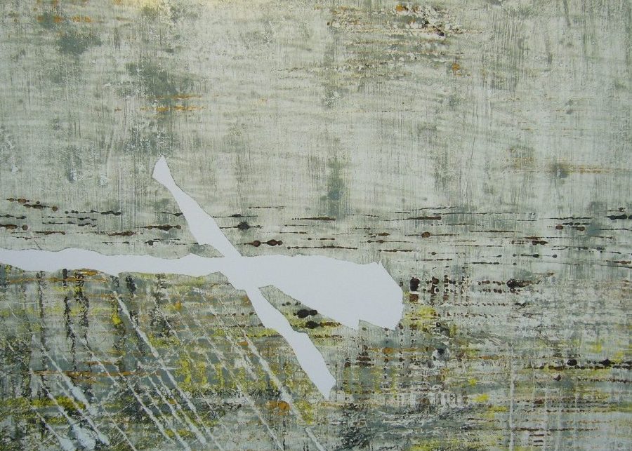 Een globale impressie van het schilderij "GESCHONDEN LAND nr. 3" 76x56cm.