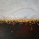 Een globale impressie van het schilderij "Kriskras" 15x15cm.