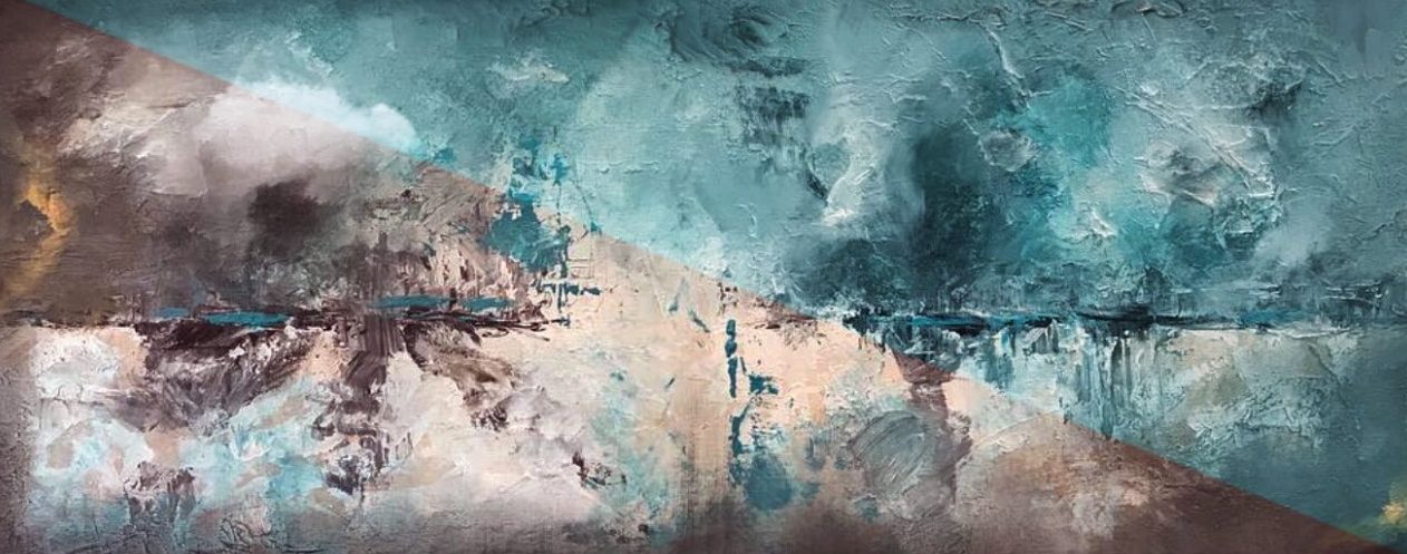 Een globale impressie van het schilderij "Adventures" 150x80cm.
