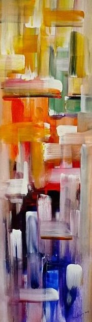 Een globale impressie van het schilderij "Regenboog" 30x100cm.