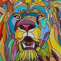Een globale impressie van het schilderij "Leeuw" 90x90cm.