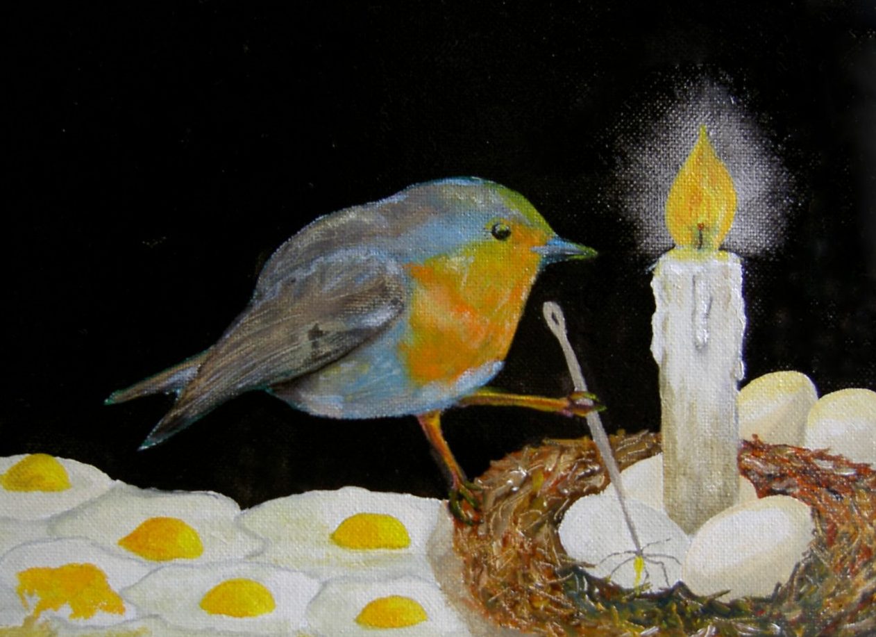Een globale impressie van het schilderij "Aborteur" 18x25cm.