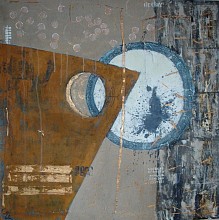 Het schilderij VERGANKELIJK laat op allerlei manieren de vergankelijkheid van het leven zien: in de natuur, zeepbellen, inktspatten, roest.