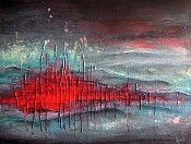 Abstract landschap, waarin de natuur het lijkt te winnen van de menselijke 'beschaving'.