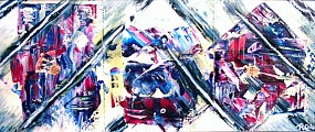 Drie luik, Acryl op katoen in een houten met lood bekleden lijst