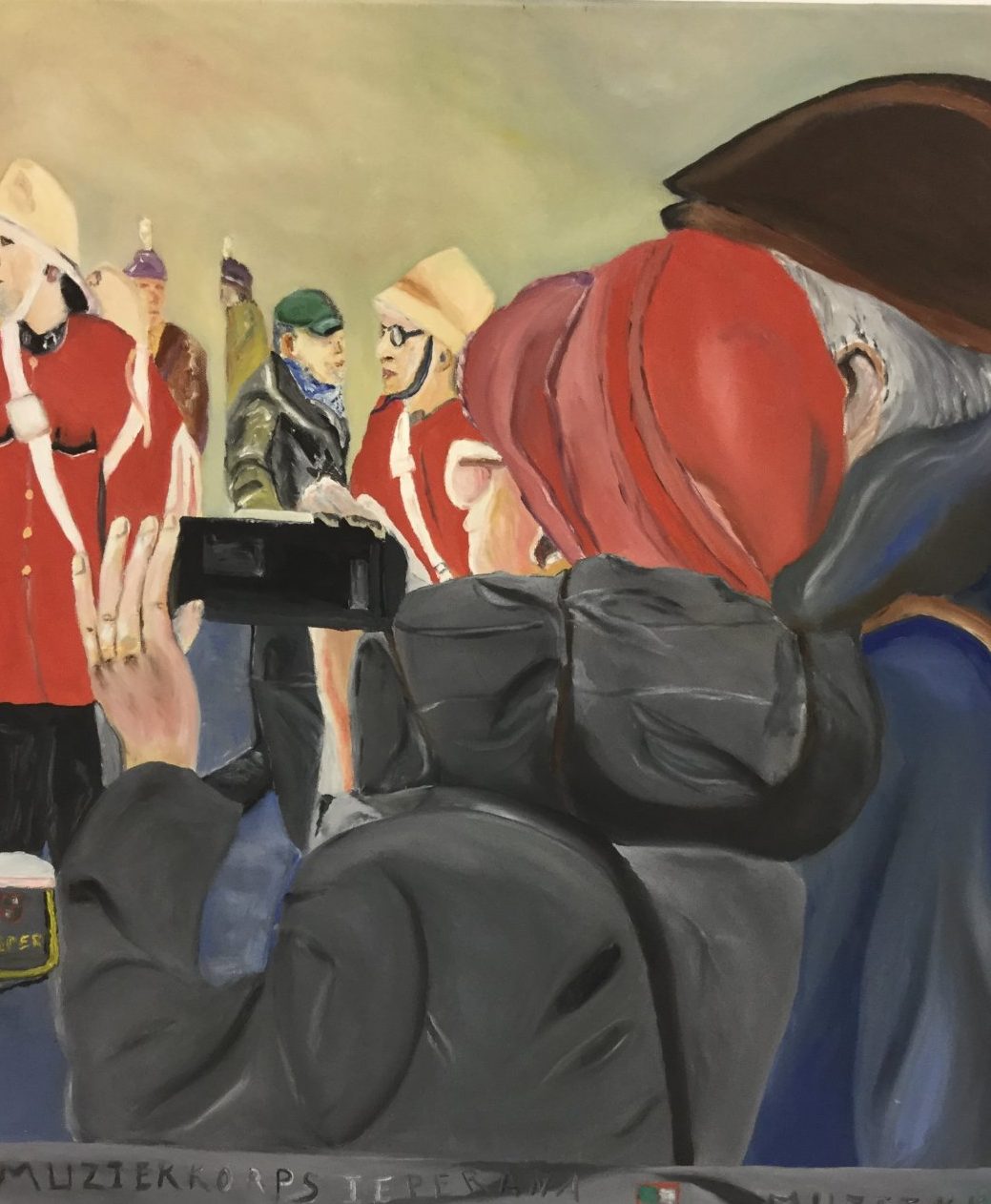 Olieverf schilderij rood zwart blauw zijn hoofd kleuren gepassioneerd van schilderen van mensen op plaatsen