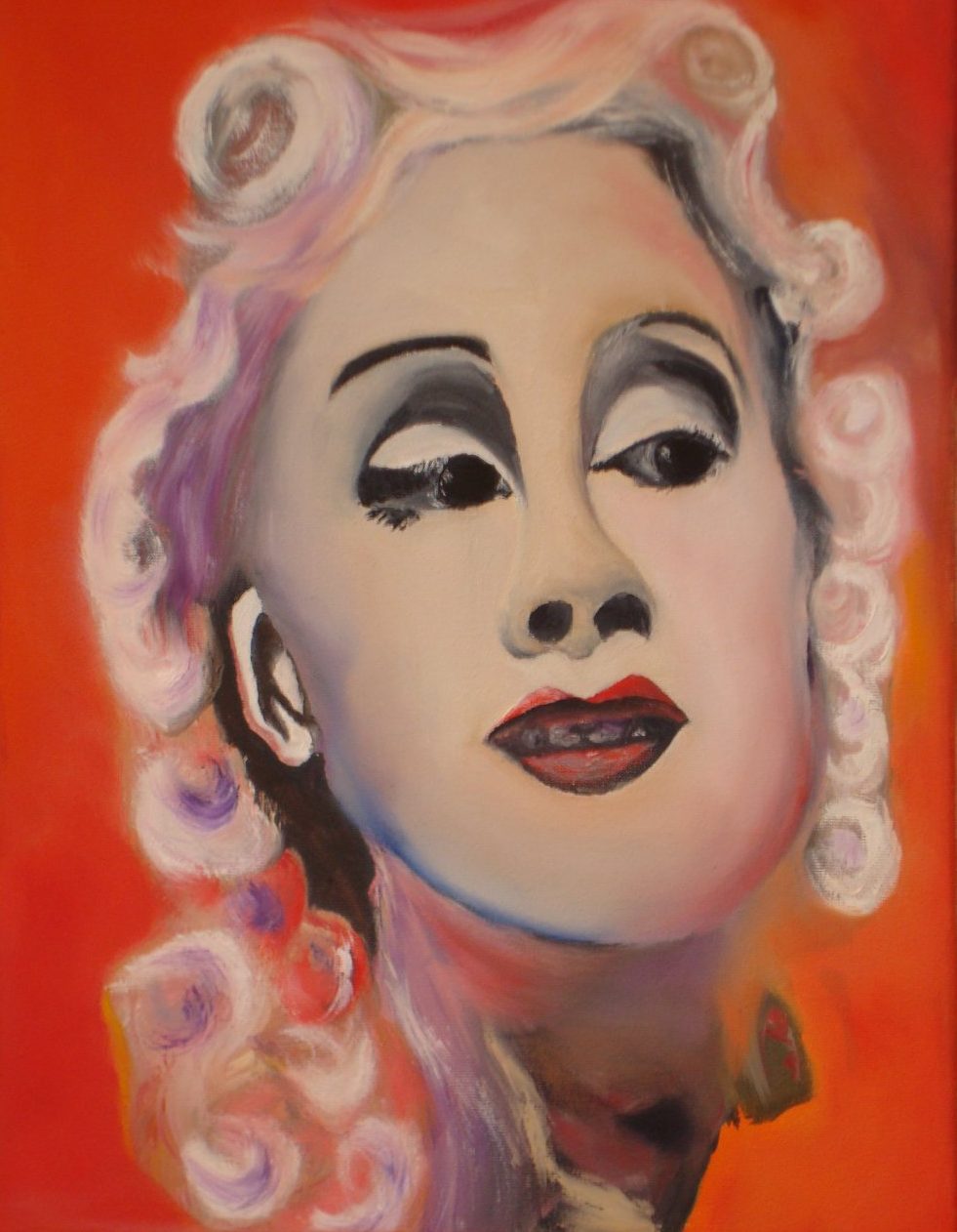 Een globale impressie van het schilderij "Marlene der blauwe engel" 30x40cm.