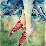 Jacqueline, getekend naar levend model op zwaar wit papier. Acryl, en potlood.