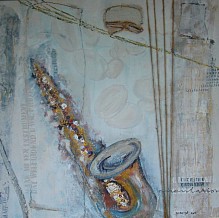 In mijn schilderwerk probeer ik altijd iets van mijzelf te leggen; een idee, een bepaalde tekst, een bepaalde techniek. Het abstracte werk vanaf 2012 is opgebouwd uit lagen en met toegevoegde materialen, zoals zand, karton, verfrondjes etc. Ook gebruik ik als toevoeging dikwijls letters. Dit schilderij is gemaakt naar aanleiding van een gedicht, waarvan de eerste regel luidt: Maak mij een instrument, waardoor Uw geest kan stromen. Zie het gedicht verder op mijn website.