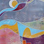 Acrylic on paper ( almost A2 size) in geometry minimalistic style. 59 x 44,5 cm