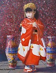 Een globale impressie van het schilderij "Chinees meisje tussen kersenbloesem" 50x60cm.