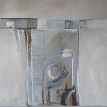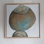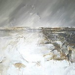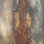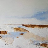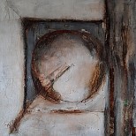Lichte structuren als ondergrond en zachte mooie aardetinten . Acryl en bister op doek.