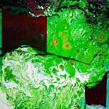 Een globale impressie van het schilderij "Zomer in corona" 80x80cm.