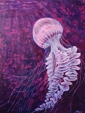 Een globale impressie van het schilderij "Zeeleven" 80x80cm.