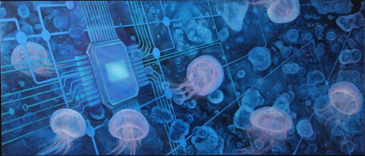 Schilderij Elektra met lichtgevende dieren