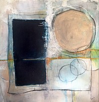 Een globale impressie van het schilderij "Out of the box" 90x90cm.